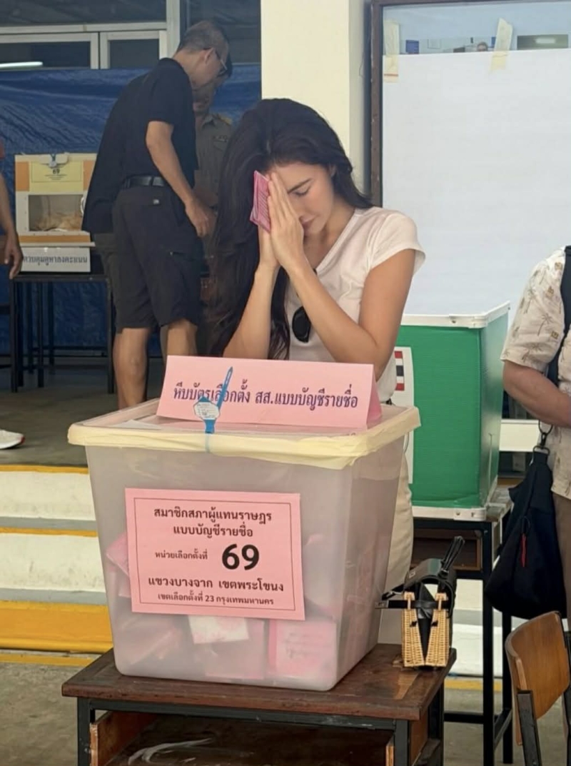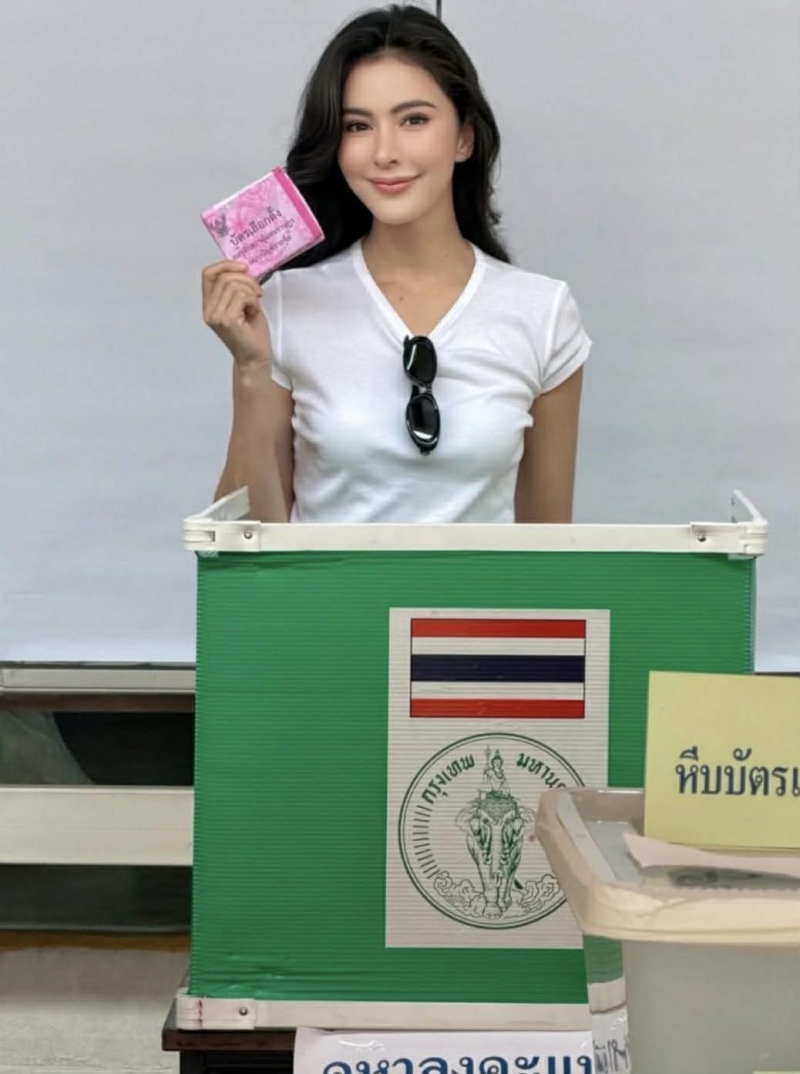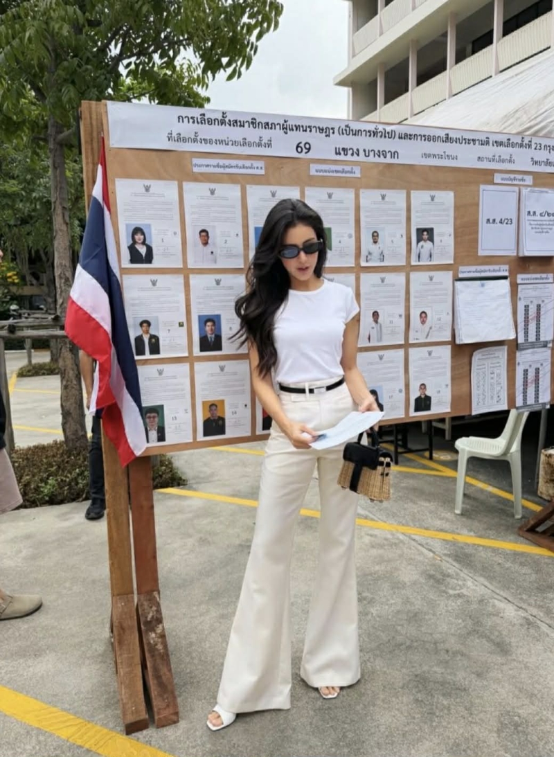 ลุคของเธอดูสุภาพ และเป็นกันเอง ท่ามกลางบรรยากาศภายในหน่วยเลือกตั้งที่เป็นไปอย่างเรียบร้อย สร้างความประทับใจให้แฟนๆ ไม่น้อย