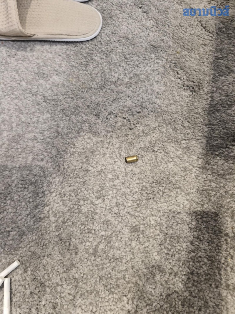 ที่ข้างตัวใกล้กับมือด้านขวาของผู้เสียชีวิต พบอาวุธปืนพักสั้น แบบแม็กกาซีน ขนาด 11 มม. ตกอยู่ 1 กระบอก และปลอกกระสุนปืนขนาดเดียวกัน ตกอยู่พรหมบนพื้น 1 ปลอก นอกจากนี้ ยังพบขวดไวน์ เพิ่งเปิดใหม่ๆ รินใส่แก้วไวน์ วางอยู่บนโต๊ะ ตำรวจจึงมีการกันพื้นที่ และให้เจ้าหน้าที่ตำรวจกองพิสูจน์หลักฐาน (พฐ.) ตรวจสอบในที่เกิดเหตุอย่างละเอียด