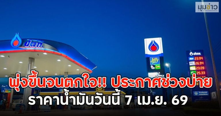พุ่งขึ้นจนตกใจ!! ประกาศช่วงบ่าย ราคาน้ำมันวันนี้ 7เม.ย. 69