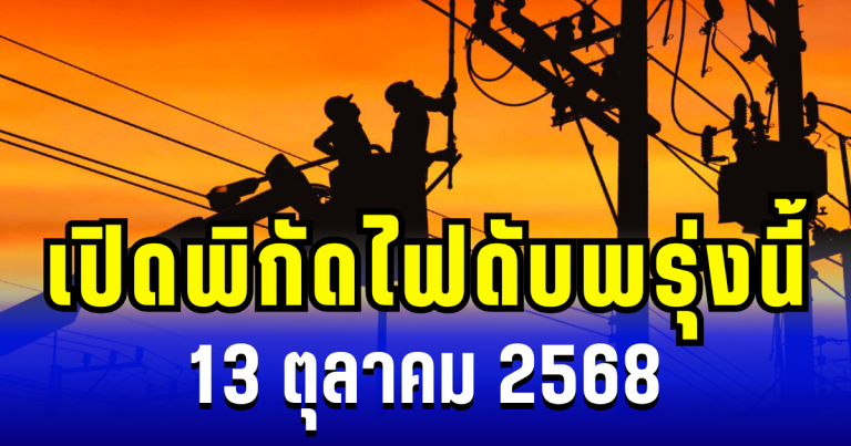 ประกาศแล้ว! เปิดพิกัด 8 พื้นที่ ไฟดับพรุ่งนี้ 13 ตุลาคม 2568